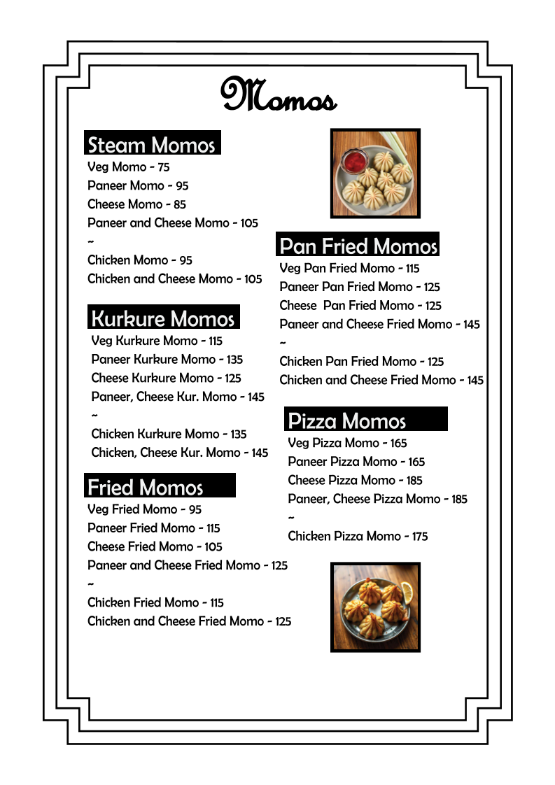 But that's not all! The menu also features an assortment of rolls and tantalizing momos. The Tandoori Momos, available in both veg and chicken, are a must-try. With each bite, you'll experience the unique blend of spices and a tender filling that will dance on your palate. Pair these with their famed Honey Chilli Potatoes or a comforting Garlic Bread to elevate your dining experience even further.